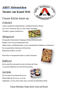 Wir freuen uns über die zahlreichen Meldungen.Camping mit Strom sind nur noch wenige Plätze frei. Ob ihr einkaufen geht oder Euch bei uns verwöhnen lasst müsst ihr entscheiden 🙂Hier einmal unsere Speisekarte für das Wochenende.